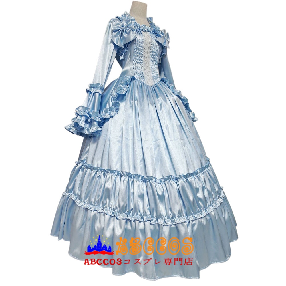 - > ロリータ ゴシック ヴィクトリアン 水色 ロングイブニングドレス 宮廷風 カラー変更可 コスプレ衣装 abccos製 「受注生産」