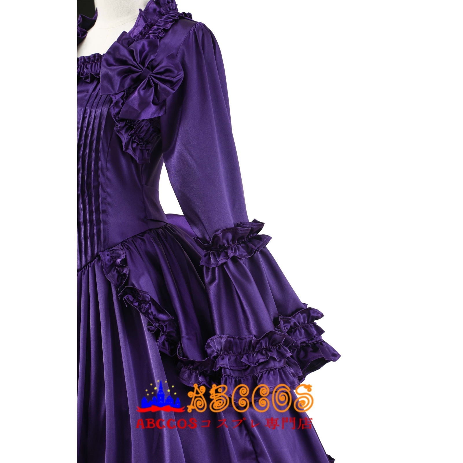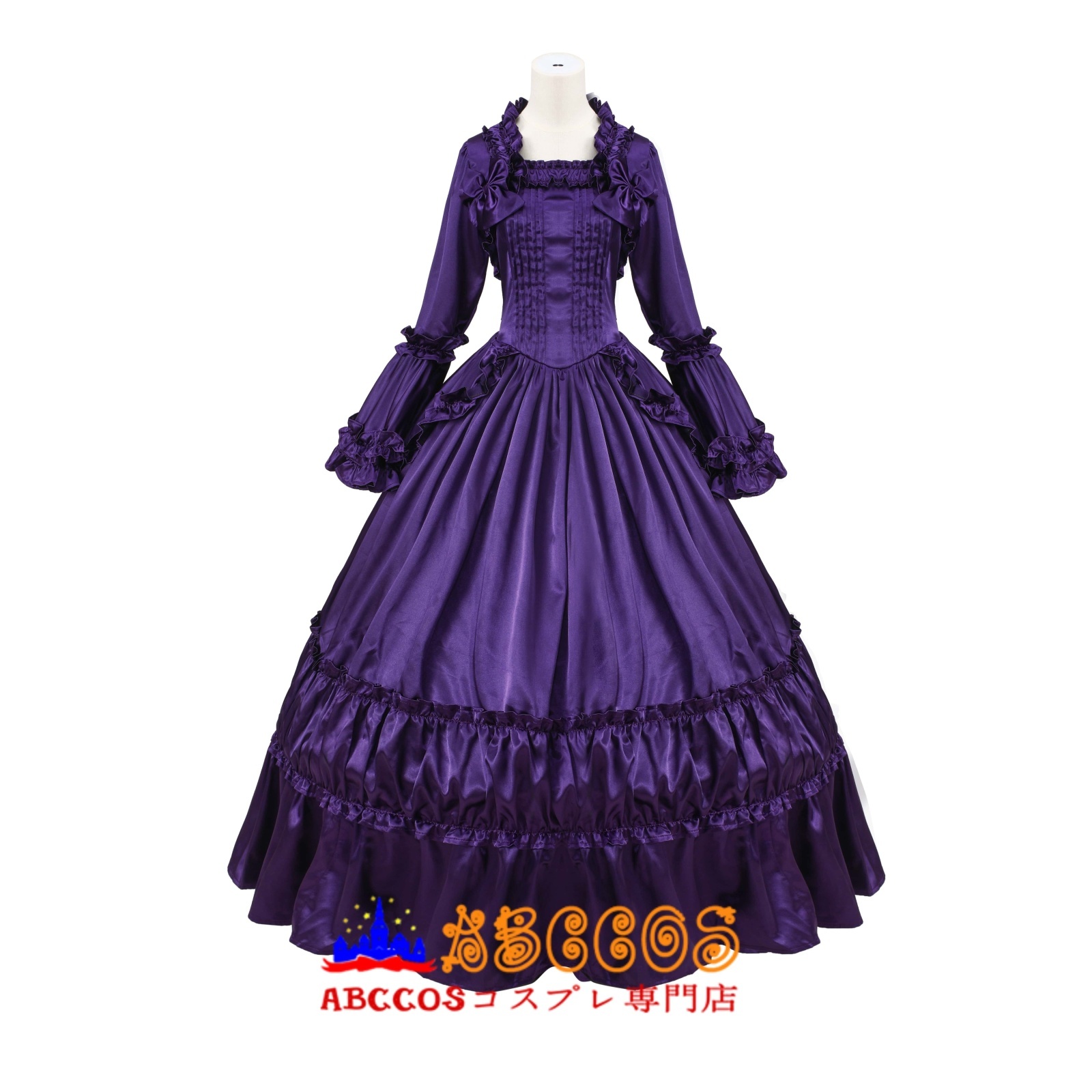 ダークパープル ゴシックロリータ ヴィクトリアンフレアスリーブ ロングドレス 宮廷風ワンピース コスプレ衣装 abccos製 「受注生産」