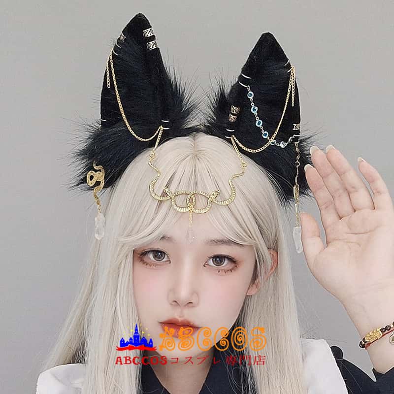 手作り ダーク系 ふわふわのヘッドアクセサリー コスプレ小道具 金属の蛇飾り ヘアアクセサリー リアルな動物の耳のヘッドバンド コスプレ道具 abccos製 「受注生産」
